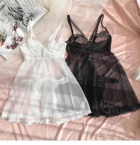 Meliza Lace Mesh Baby Doll Bodysuit - Black