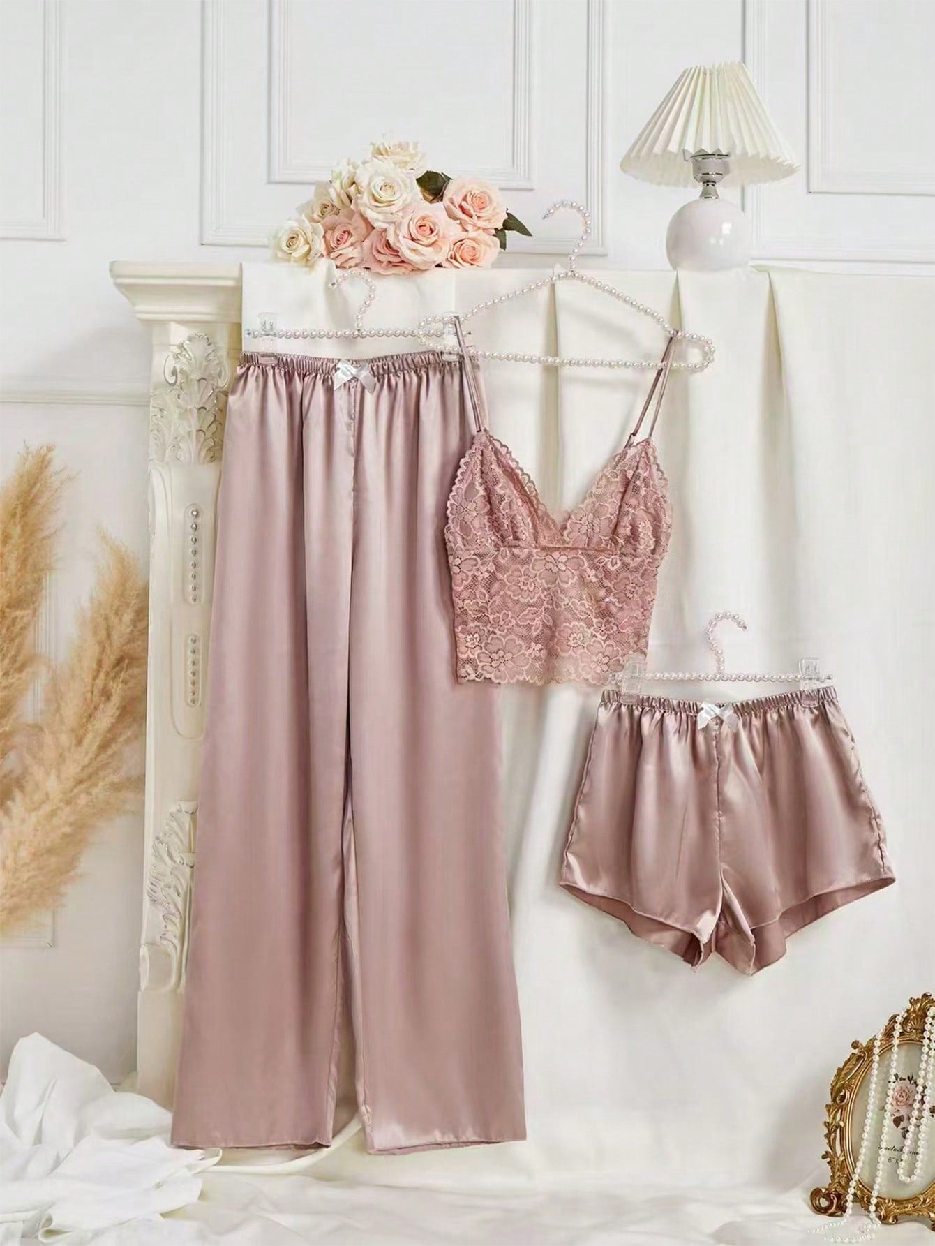 Ambara Silk Lace Pajamas 3 Packs - Mauve