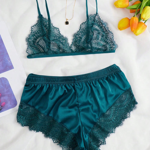 Aliyah Lace Satin Silk Intimate - Teal Green