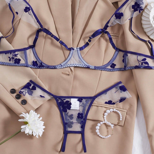 Ramona Floral Open Crotch Intimate - Navy Blue
