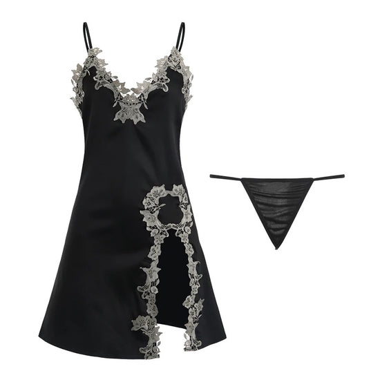 Lacey Silk Sleepwear - Black