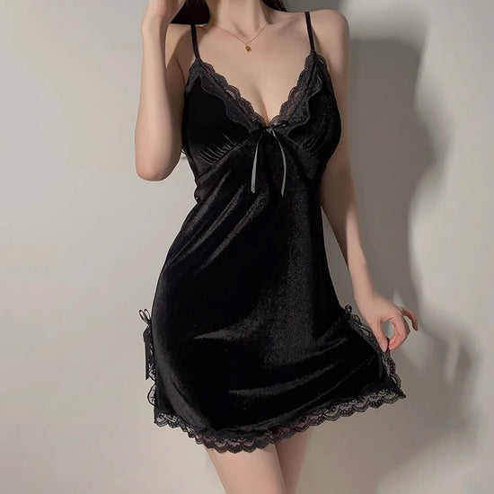 Lacey Silk Sleepwear - Black