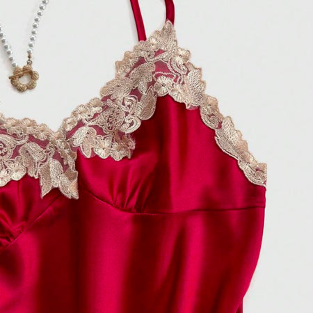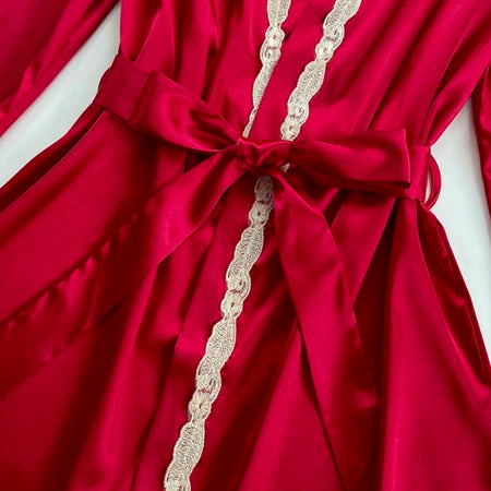 Primrose Silk Mesh Luxe Sleepwear + Robe - Red