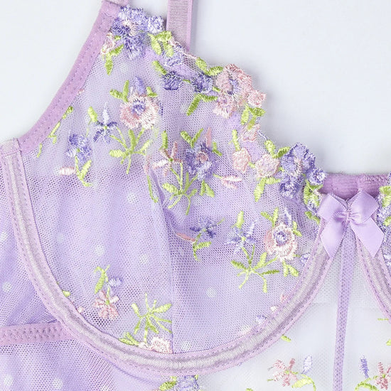 Helena Lace Mesh Embroidery Sleepdress - Lilac