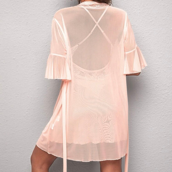 Kara Mesh Lace Sleep Dress + Robe - Peach