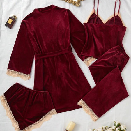 Velvety 4 Packs Pajamas Set - Burgundy | Sunny Bright