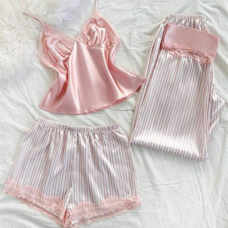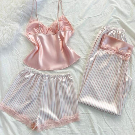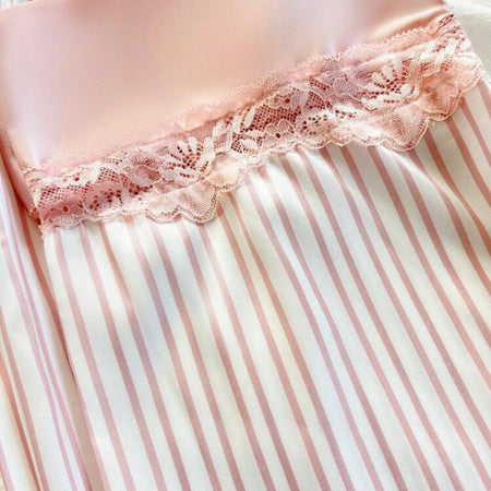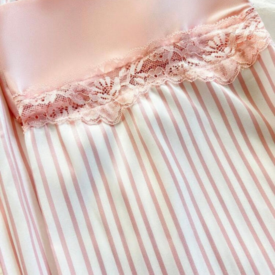 Abel Silk Lace Pajamas Stripes Set - Pink