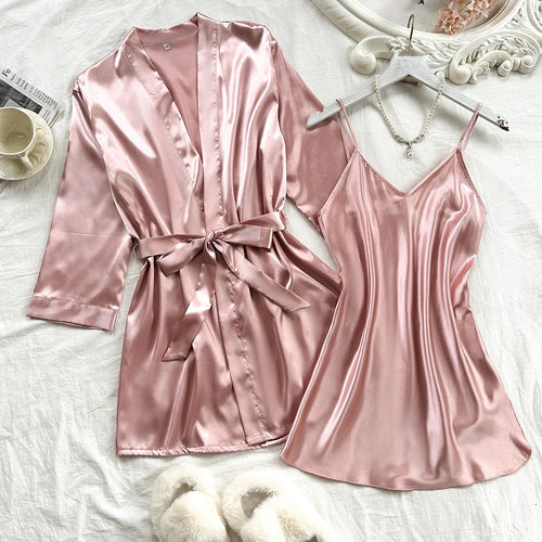 Seraphina Silk Sleepwear + Robe - Dusty Rose