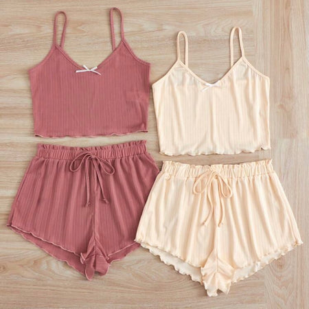 Billie Knit Pajamas 2 Packs Set - Cameo Brown & Apricot | Sunny Bright