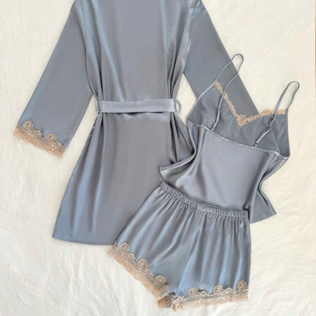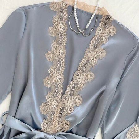 Meldy Silk Lace Robe Pajamas Set - Bronze