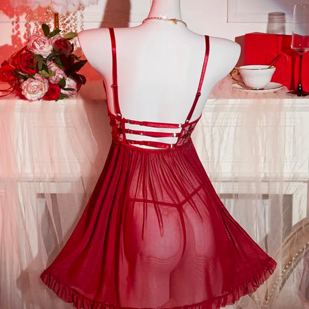 Kessie Mesh Sleepwear - Deep Red