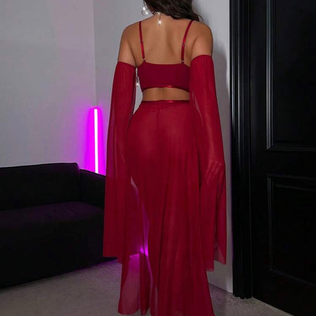 Queen Of Persia Mesh Sparkly Tassle Costume - Burgundy