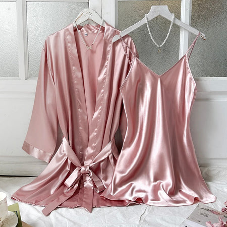 Seraphina Silk Sleepwear + Robe - Dusty Rose | Sunny Bright