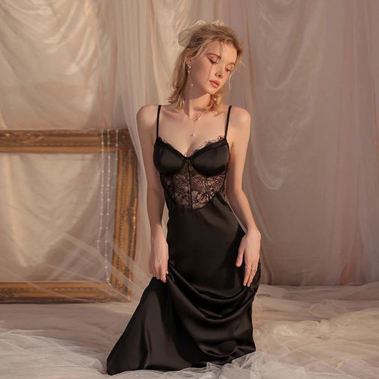 Lacey Silk Sleepwear - Black