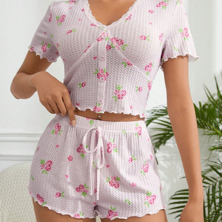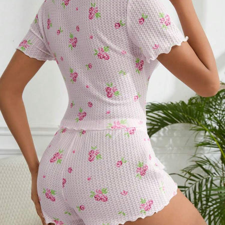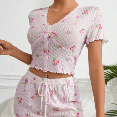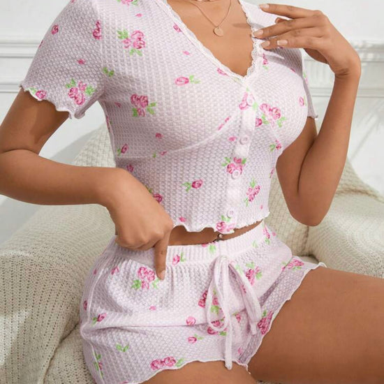 Shawty Knitted Floral Pajamas Set - Pink | Sunny Bright