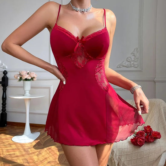 Sisi Mesh Lace Sleepwear - Wine Red