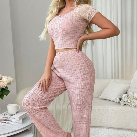 Sabrina Knitted Lace Pajamas Set - Mauve
