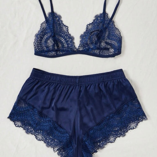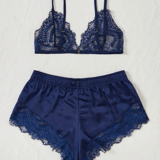 Aliyah Lace Satin Silk Intimate - Navy Blue