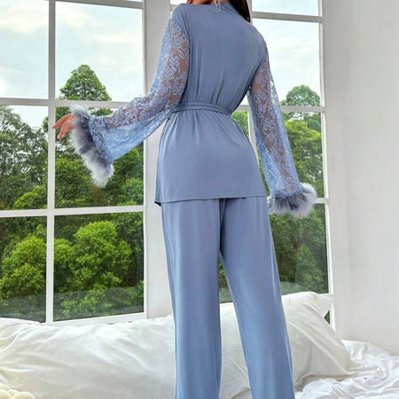 Meldy Silk Lace Robe Pajamas Set - Bronze