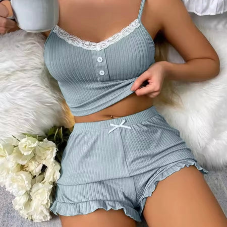 Kelly Two Piece Pajamas Set - Cornflower Blue