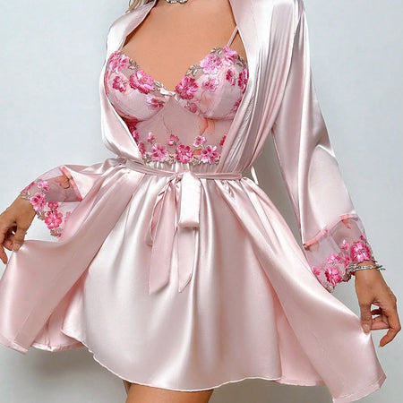 Kalia Luxe Embroidery Sleepwear + Robe - Baby Pink