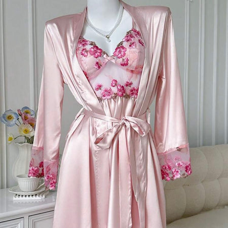 New Alya Pastel Silk Sleepwear + Robe - Pink