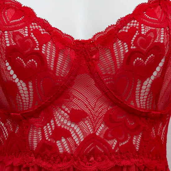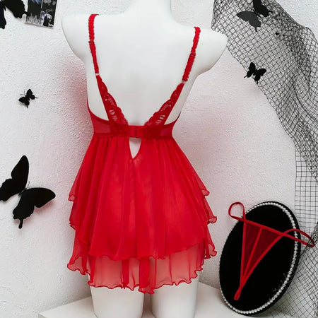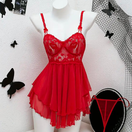 Selene Lace Mesh Baby Doll - Red | Sunny Bright