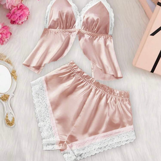 Goldie Two Piece Silk Sleepwear - Mauve