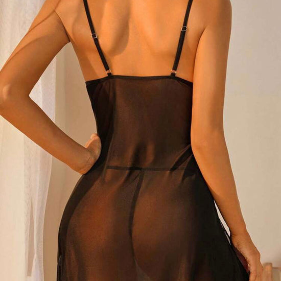 Meliza Lace Mesh Baby Doll Bodysuit - Black