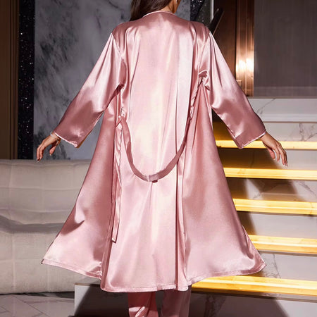 New Alya Pastel Silk Sleepwear + Robe - Pink