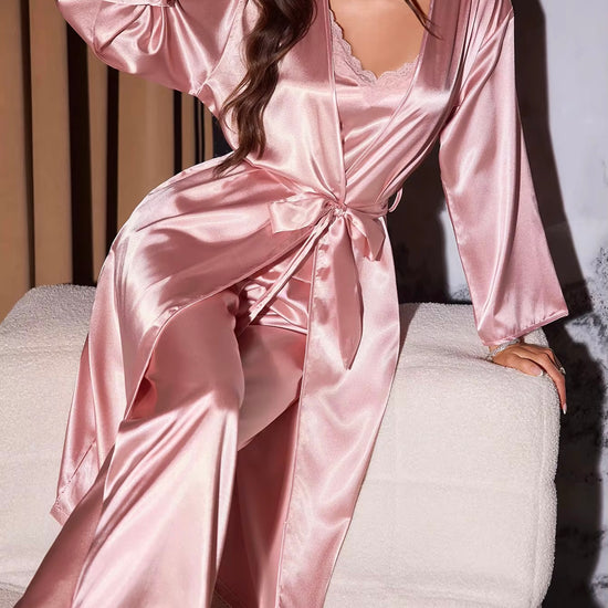 Marie Silk Sleepwear + Robe - Pink