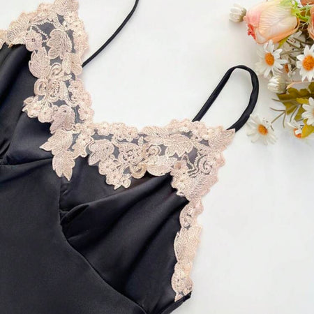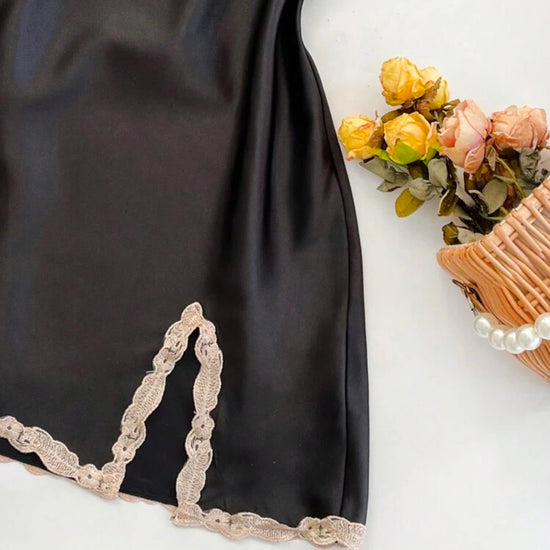 New Alya Pastel Silk Sleepwear + Robe - Black