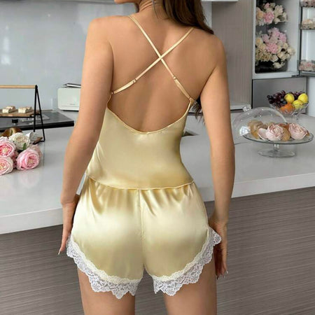 Cambra Silk Lace Pajamas Set - Yellow