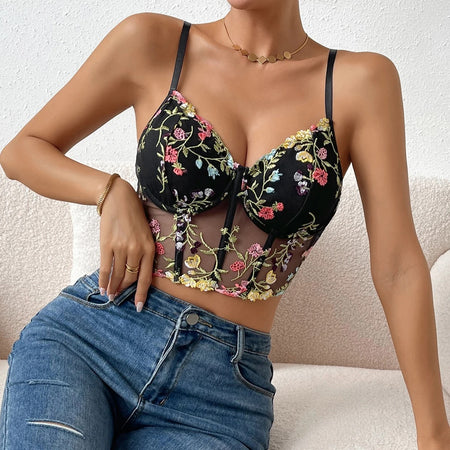 Rolly Embroidery Bustier Top