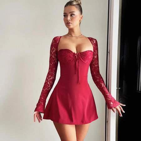 Celestine Upper Bodycon Flare Dress - Red