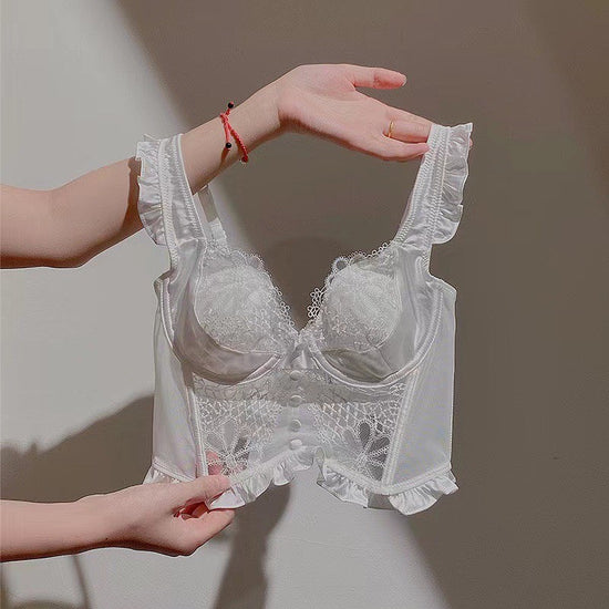 Rosalie Silk Embroidery Mesh Bustier - Black
