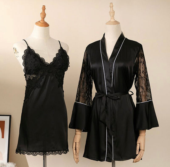 Lacey Silk Sleepwear - Black