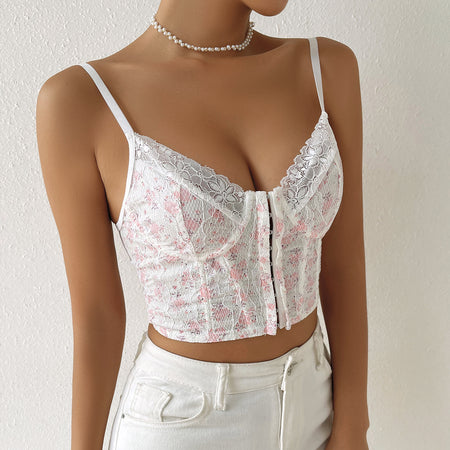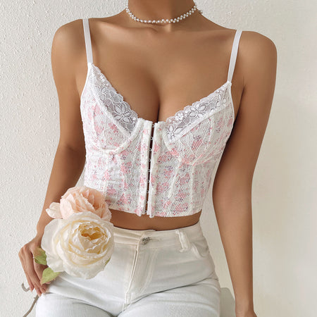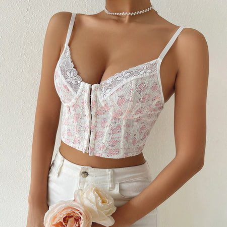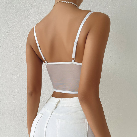 Rosalie Silk Embroidery Mesh Bustier - Black