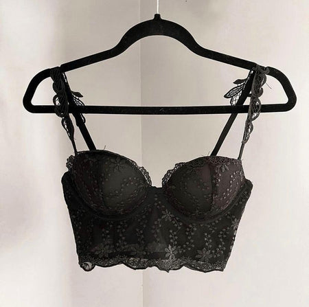 Rosalie Silk Embroidery Mesh Bustier - Black