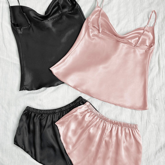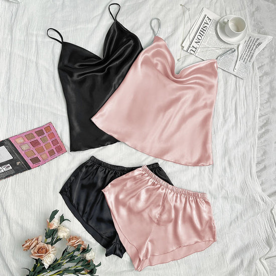 Kira Basic Silk Pajamas Set 2 Piece - Pink & Black | Sunny Bright