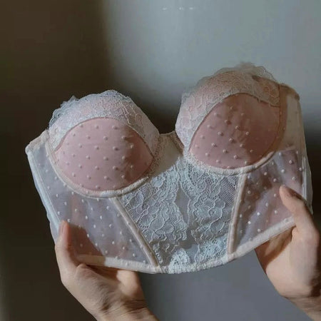 Rosalie Silk Embroidery Mesh Bustier - Black