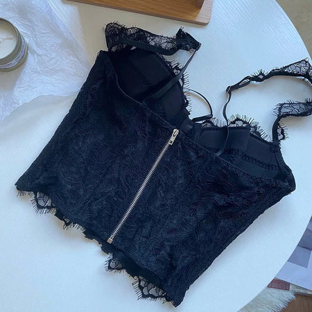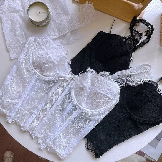 Rosalie Silk Embroidery Mesh Bustier - Black