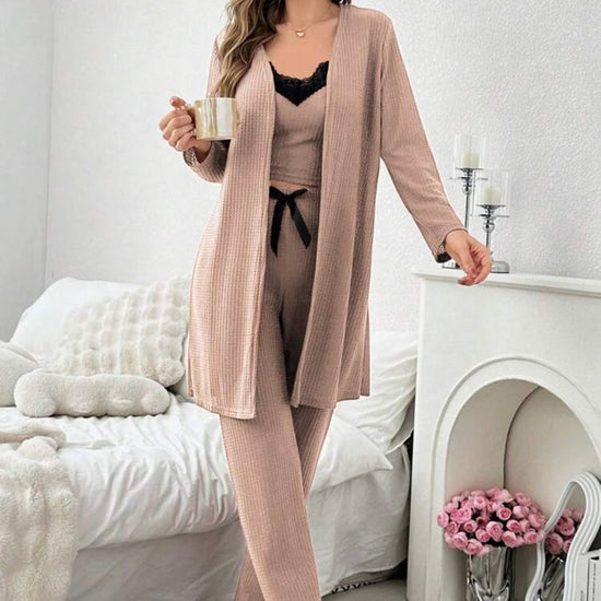 Melody Knitted Pajamas Set + Robe - Brown | Sunny Bright