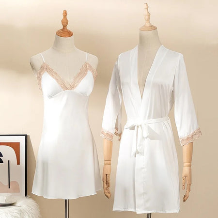 Christy Silk Sleepwear + Robe - White Boned