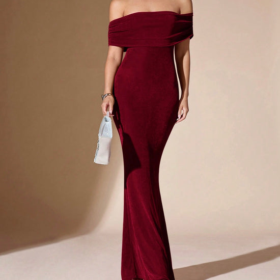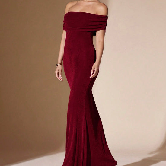 Merlot Knitted Sabrina Maxi Dress - Wine Red