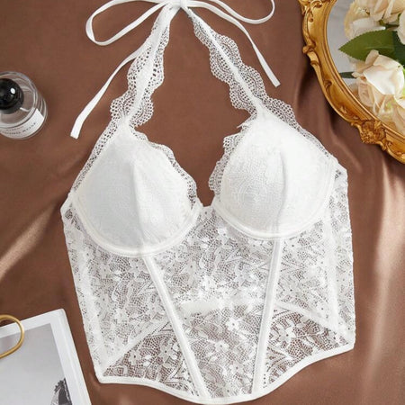 Rosalie Silk Embroidery Mesh Bustier - Black