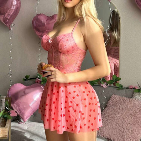 Meliza Lace Mesh Baby Doll Bodysuit - Black