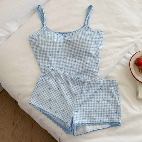 Darcia Floral Pajamas Set - Blue