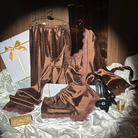 Megan 3 Piece Pajamas Set - Mocha Brown