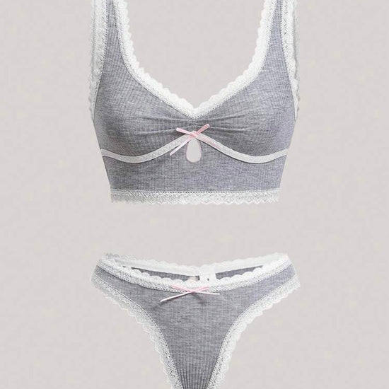 Shania Knitted Lounge Intimate Set - Gray | Sunny Bright